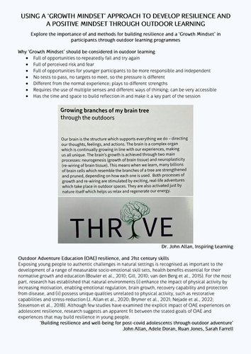 Using a 'Growth Mindset' approach to Develop Resilience and a Positive Mindset through Outdoor Learning