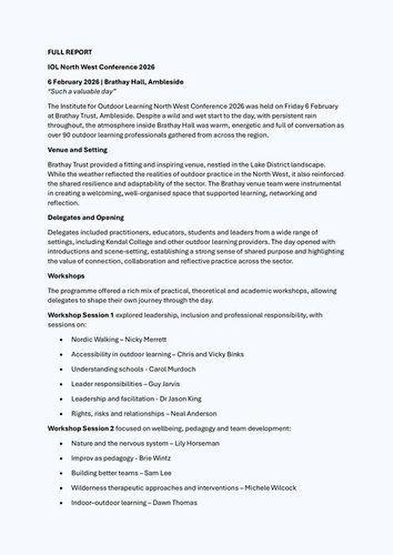 The IOL North West Conference took place on 6 February 2026 at Brathay Trust, Ambleside, bringing together over 90 outdoor learning professionals from across the region.